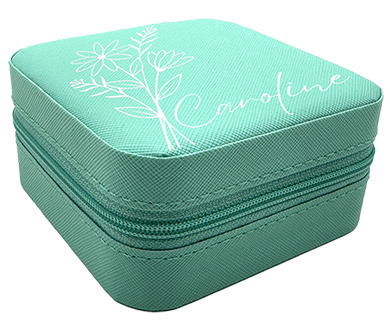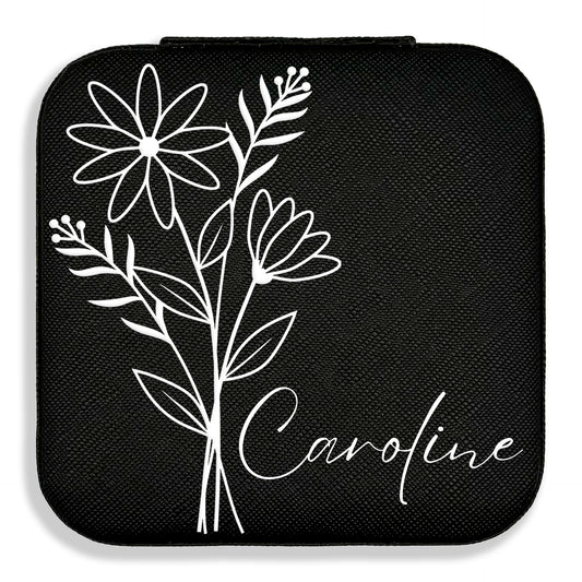 Keep your jewellery safe when you travel with our mini travel jewellery boxes. Made special with a flower decoration and personalisation of your choice.